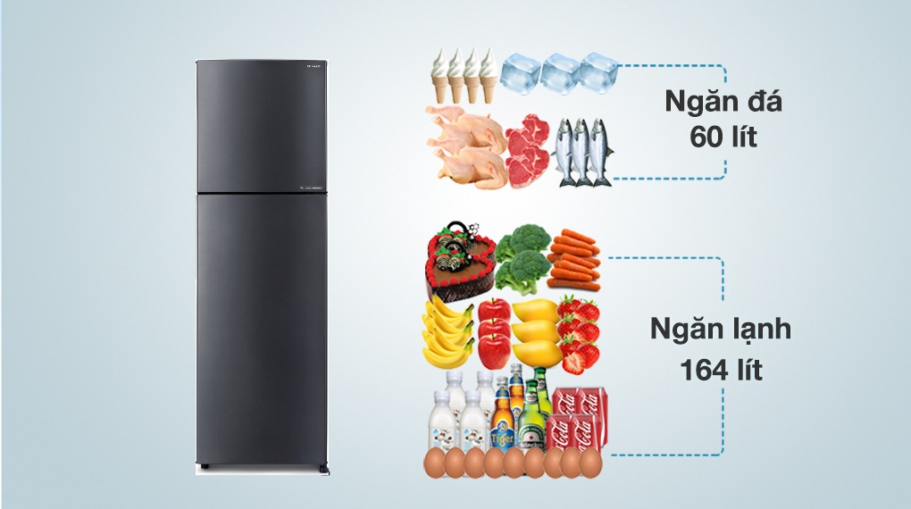 – Dung tích sử dụng 224 lít cung cấp đủ không gian lưu trữ thực phẩm cho gia đình có từ 2 đến 3 thành viên.