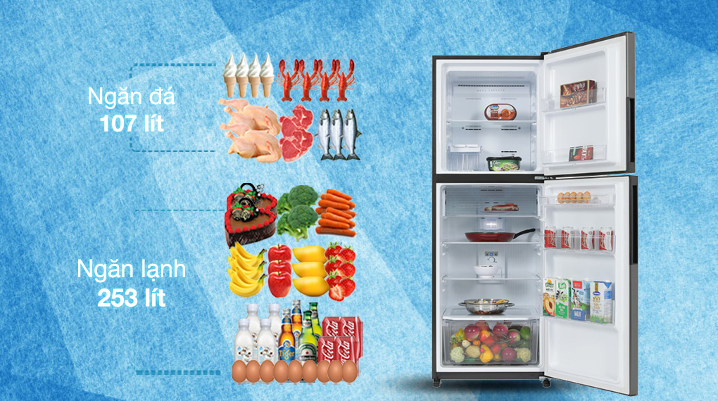 Ngăn lạnh có dung tích 253 lít, gồm có 1 ngăn đông mềm, 2 kệ chia làm 3 ngăn và 1 ngăn rau củ quả. Hơn nữa, 3 khay chứa còn được thiết kế phía bên cánh cửa tủ.