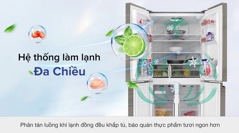 Hơi lạnh lan tỏa đều mọi ngăn tủ với công nghệ làm lạnh kép đa chiều