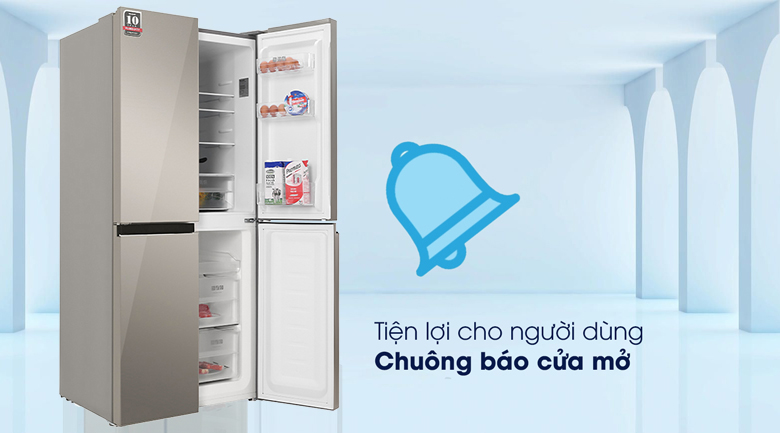 Ngoài ra, tủ lạnh còn trang bị thêm chuông báo mở cửa, chuông này sẽ reo khi bạn mở cửa quá lâu hay không đóng kín cửa giúp tránh thất thoát hơi lạnh ảnh hưởng đến thực phẩm và tiết kiệm điện năng.