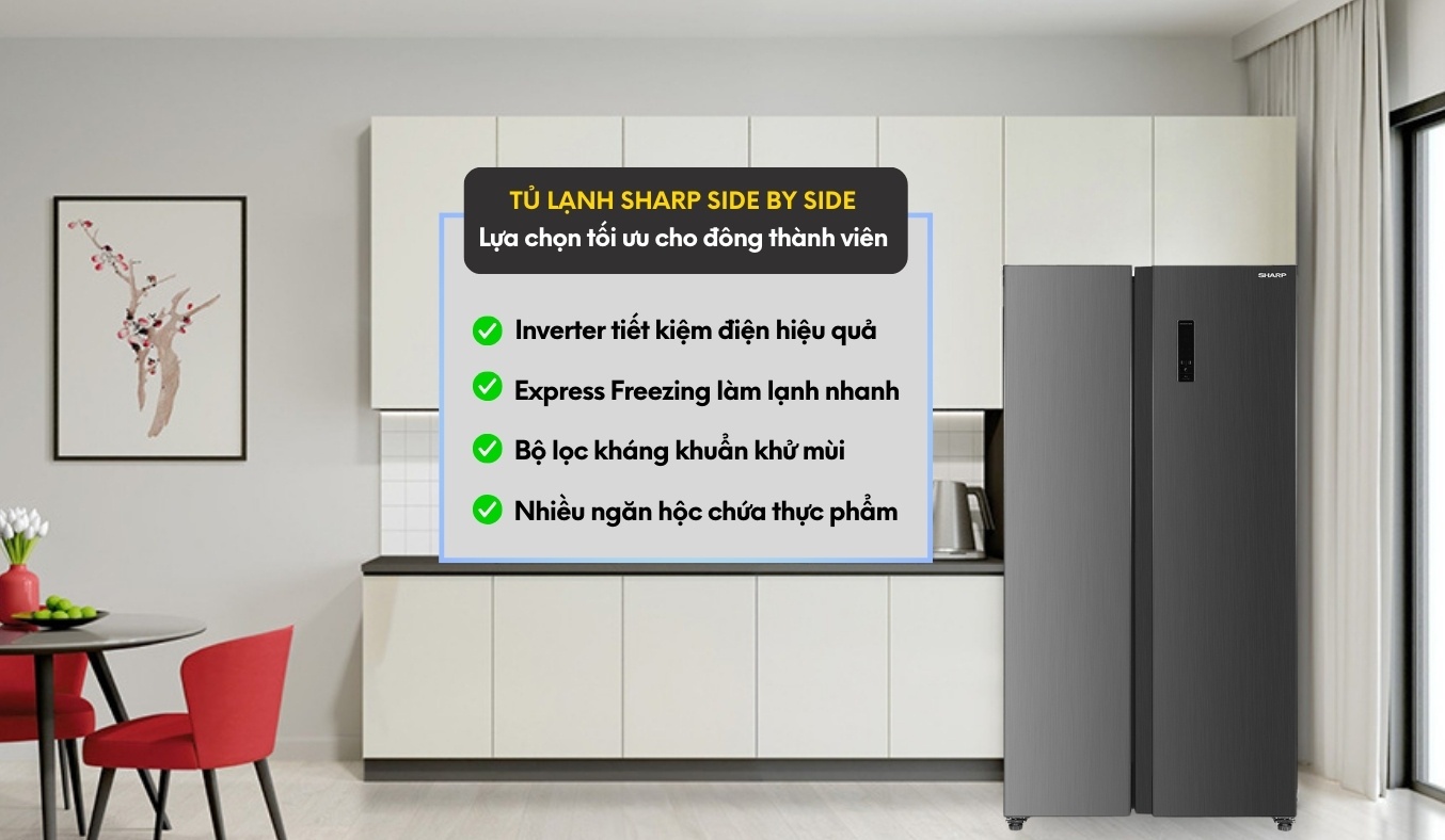 Tủ lạnh Sharp Inverter – Thiết kế phẳng thời thượng, hòa hợp mọi loại nội thất