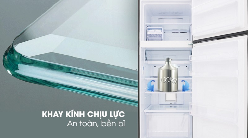 Khay chứa bên trong tủ lạnh được làm từ những tấm kính chịu lực tốt, bền bỉ để bạn có thể yên tâm hơn trong quá trình sử dụng mà không cần lo sẽ làm ảnh hưởng đến tủ lạnh.