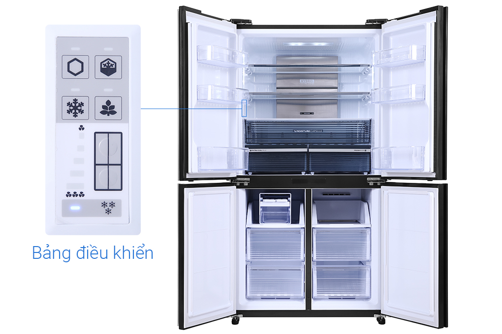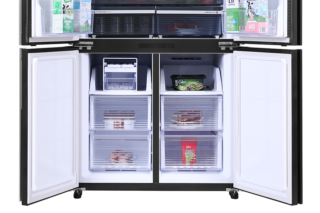 Tủ lạnh Sharp này sở hữu kim loại sang trọng, thời thượng. Thiết kế 4 cửa kiểu pháp giúp sản phẩm trở thành điểm nổi bật cho nội thất trong nhà.