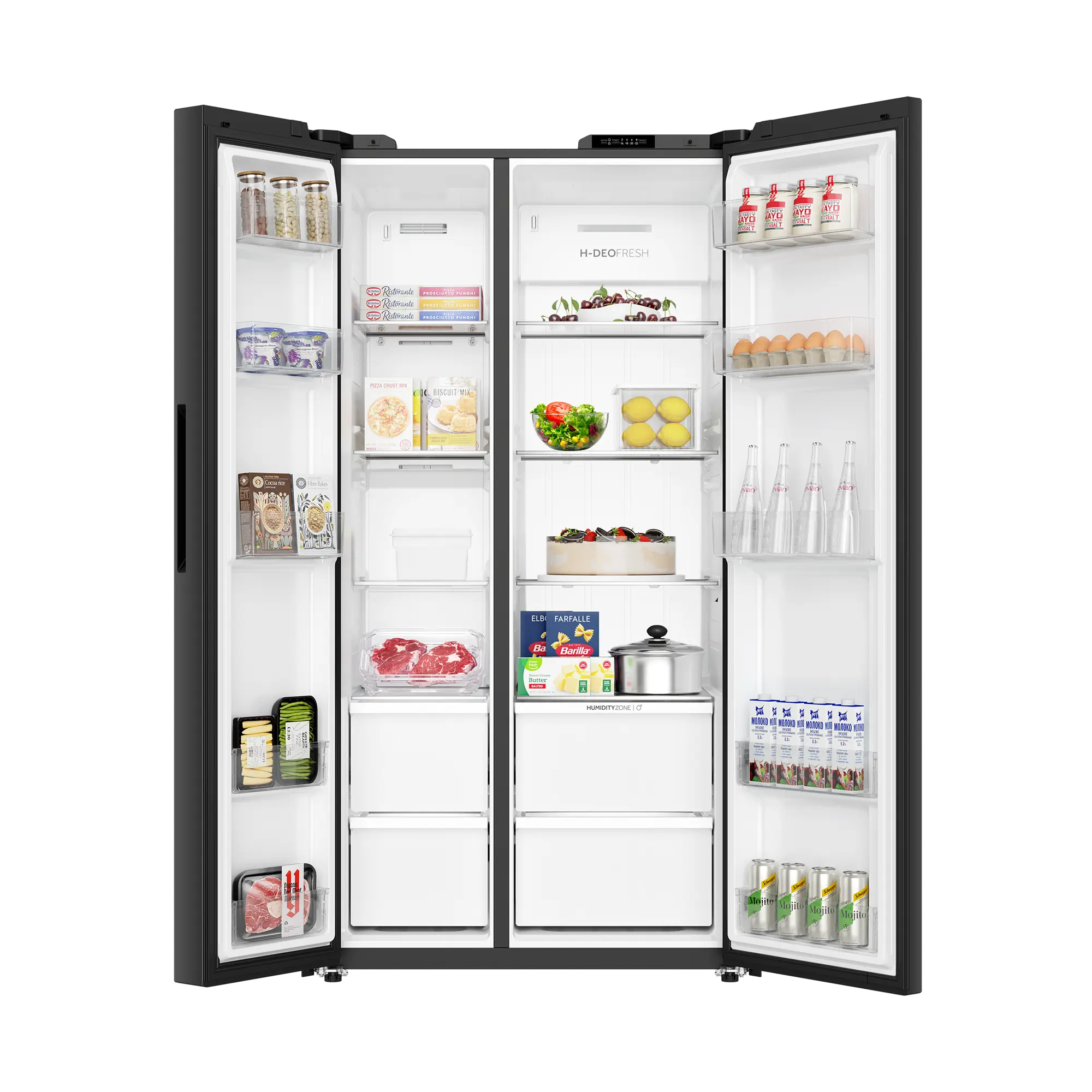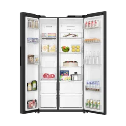 Tủ lạnh Aqua Inverter AQR-S633XA(SL) thuộc dòng tủ lạnh Side by Side với 2 cánh mở 2 bên cực kì tiện lợi, hai ngăn đông và ngăn mát được bố trí song song theo chiều dọc, bạn sẽ dễ dàng sắp xếp thực phẩm yêu thích trong tầm mắt, thuận tiện cho việc lấy ra mà không cần cúi xuống tìm kiếm. Khay kính linh hoạt có thể tùy chỉnh độ cao để phù hợp nhất với kích thước của thực phẩm lưu trữ, dễ dàng tháo lắp và vệ sinh. Ngoài ra, các ngăn kệ ở cánh tủ thiết kế nghiêng 95 độ, hạn chế tình trạng đổ ngã chai lọ.
