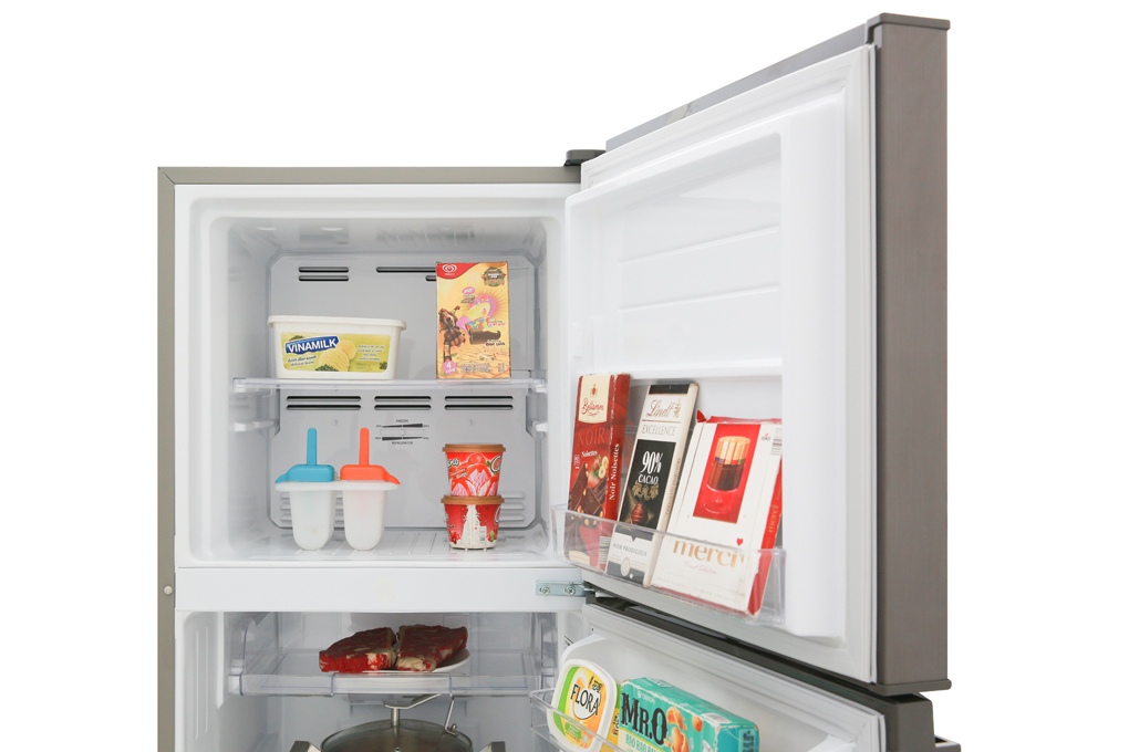 Tủ lạnh 2 cửa này còn có thêm ngăn rau củ quả có dung tích khá lớn để bạn có thể thoải mái bảo quản rau củ quả nhiều hơn và giữ tươi ngon lâu hơn nhờ khả năng tạo độ ẩm phù hợp cho rau củ quả của ngăn chứa.