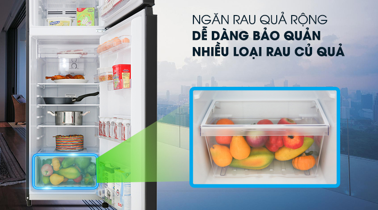 Ngăn rau quả rộng, dễ dàng bảo quản nhiều loại rau củ quả