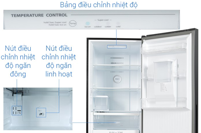 – Ngăn cấp đông mềm Flex-zone -1°C: bảo quản được thịt, cá trong 3 đến 4 ngày mà không cần rã đông, chế biến tiện lợi trong khi vẫn giúp giữ được nguyên hương vị. Ngăn chứa này còn giúp làm lạnh thức uống nhanh chóng, thiết kế có thể đổi vị trí tùy thích.