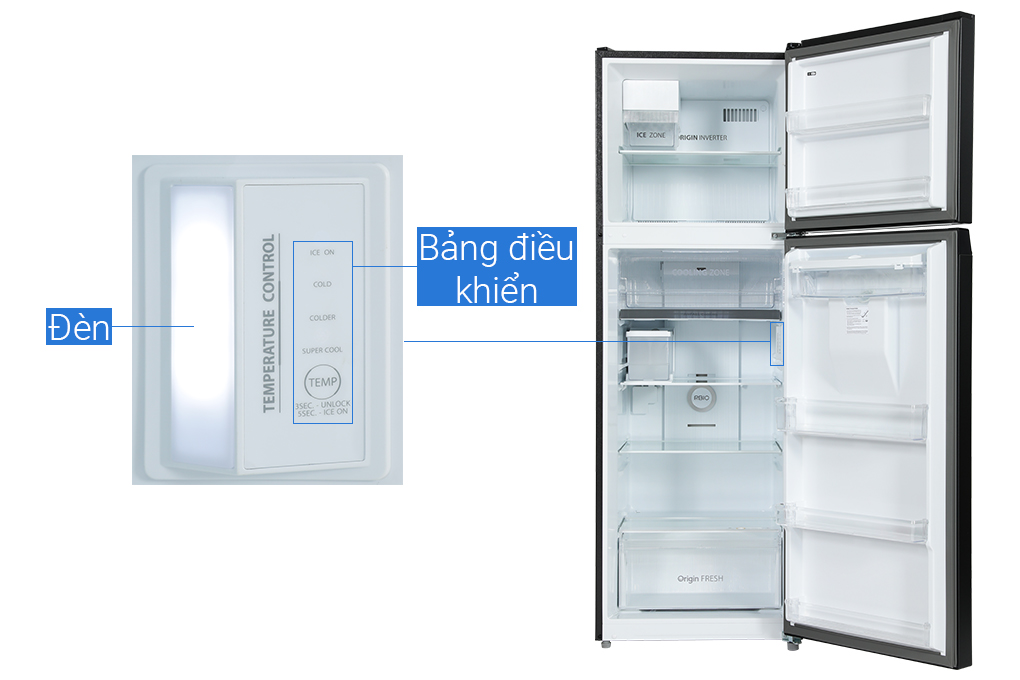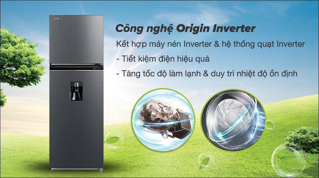 Công nghệ Origin Inverter: Có sự kết hợp giữa máy nén Inverter và hệ thống quạt Inverter, giúp tăng tốc độ làm lạnh và duy trì nhiệt độ ổn định bên trong các ngăn tủ mà vẫn giảm thiểu được lượng điện năng tiêu thụ tối đa. Hơn nữa, công nghệ này còn giúp cho tủ lạnh Toshiba có khả năng vận hành êm ái.