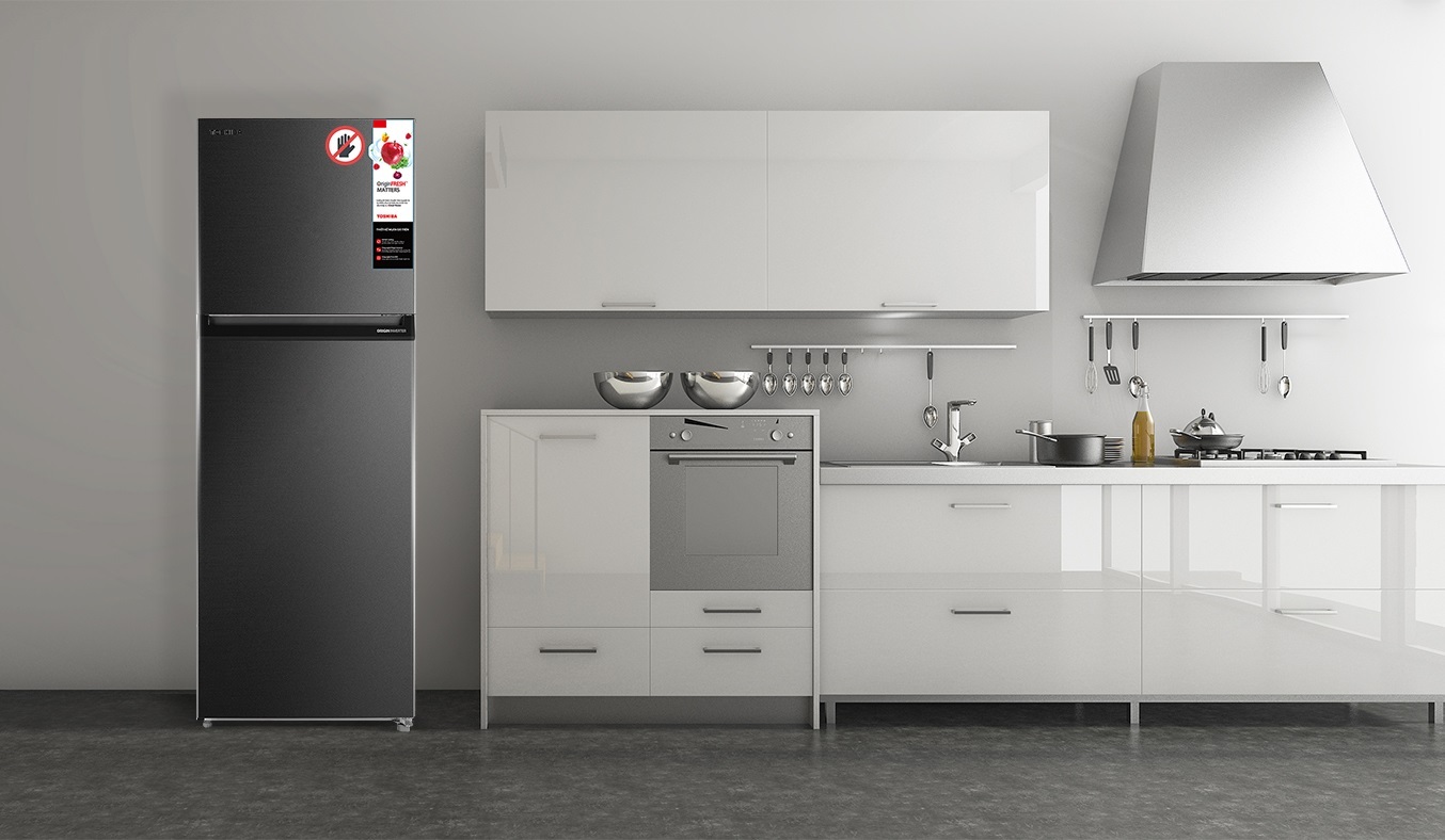 Tủ lạnh Inverter của thương hiệu Toshiba được trang bị Công nghệ Air Fall Cooling với luồng khí lạnh thổi xuống từ phía trước kết hợp luồng khí từ phía sau cho khí lạnh tỏa đều khắp tủ giúp thực phẩm luôn tươi ngon dù cất trữ bất kỳ vị trí nào ngay cả ở cửa tủ.