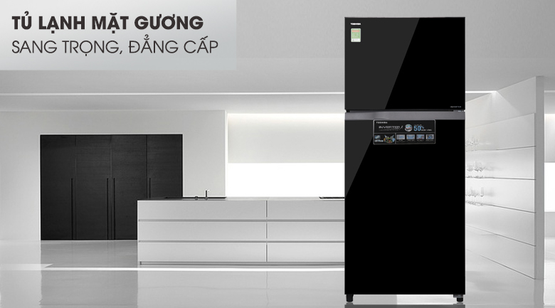 Tủ lạnh Toshiba Inverter 359 lít GR-AG41VPDZ XK có thiết kế chữ nhật cứng cáp, mặt gương kết hợp sắc đen mạnh mẽ, nổi bật sẽ làm phù hợp với mọi không gian nhà bếp của gia đình bạn.