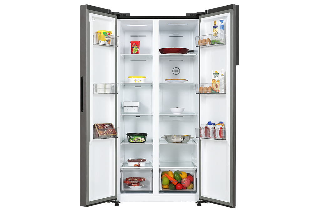 – Tủ lạnh Toshiba Inverter 460 lít GR-RS600WI-PMV(37)-SG được thiết kế theo kiểu Side by side với chất liệu cửa tủ bằng bằng thép không gỉ có độ bền cao, đồng thời phủ lớp sơn tĩnh điện màu xám satin bóng mờ tạo nên vẻ đẹp tinh tế cho sản phẩm, nhờ đó có thể phù hợp cho mọi vị trí lắp đặt bên trong gian bếp hiện đại nhà bạn.