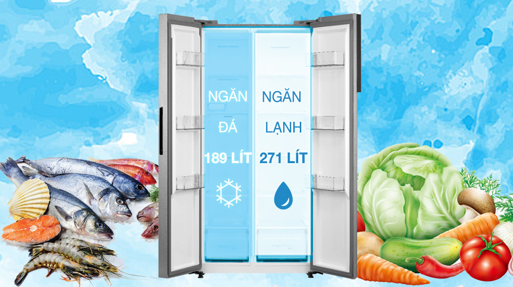Ngăn đá có dung tích 189 lít, gồm có kệ phân thành nhiều ngăn, hộc làm đá và ngăn chứa. Ngoài ra, phía cánh cửa cũng được thiết kế thêm 3 khay đựng.