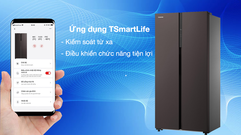 Điều khiển từ xa trên ứng dụng TSmartLife: Tủ lạnh Toshiba 460 lít này có thể kết nối Internet, hỗ trợ người dùng kiểm soát và điều khiển tủ lạnh từ xa một cách nhanh chóng thông qua ứng dụng TSmartLife được cài đặt trên điện thoại thông minh hoặc máy tính bảng.
