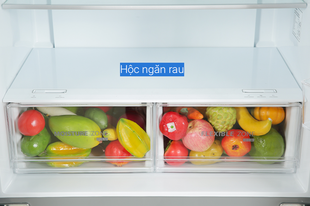 – Ngăn rau củ Moisture Zone: Giúp tăng cường và duy trì độ ẩm phù hợp, nhờ đó giữ được độ tươi ngon của rau củ quả, tránh tình trạng bị úng hoặc bị héo trong suốt thời gian bảo quản.