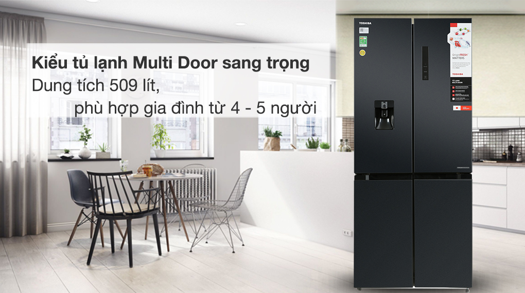 • Kiểu dáng Multi Door hiện đại, dung tích lên đến 509 lít, thích hợp cho gia đình từ 4 – 5 người.