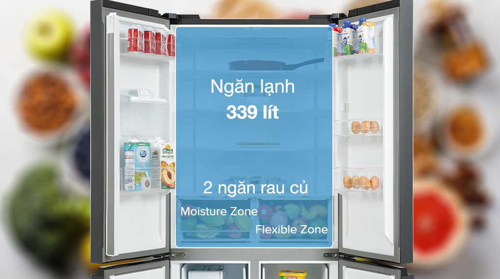 • Công nghệ bảo quản thực phẩm: Giữ nguyên hương vị với Flexible Zone Ngăn làm lạnh kép Dual Cooling Zone Tăng cường dưỡng chất với Moisture Zone