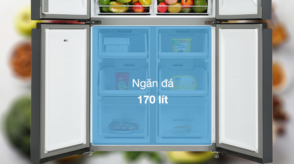 – Dung tích ngăn đá đạt 170 lít, trong đó gồm có 2 hộc ngăn đá, 3 ngăn chứa và 1 ngăn khay làm đá viên.