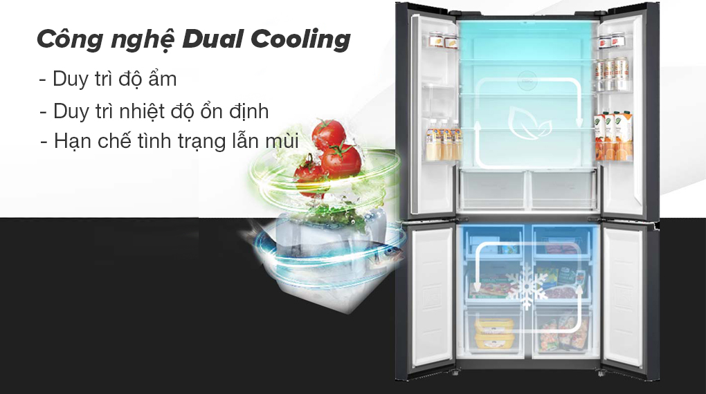 – Công nghệ Dual Cooling 2 dàn lạnh độc lập: Giúp duy trì độ ẩm, nhiệt độ ổn định và đồng đều mỗi ngăn, đồng thời còn hạn chế tình trạng lẫn mùi khi bảo quản thực phẩm giữa ngăn lạnh và ngăn đá.
