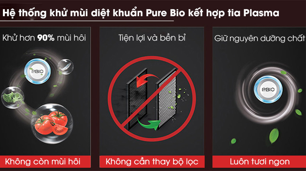Công nghệ PureBio kết hợp với hệ thống Plasma ion âm có khả năng loại bỏ tối ưu vi khuẩn và mùi hôi xuất hiện bên trong tủ lạnh, nhất là mùi ethylene từ rau quả để duy trì được độ tươi ngon cho nhóm thực phẩm này và góp phần mang lại luồng khí tươi mát cho bên trong tủ lạnh.
