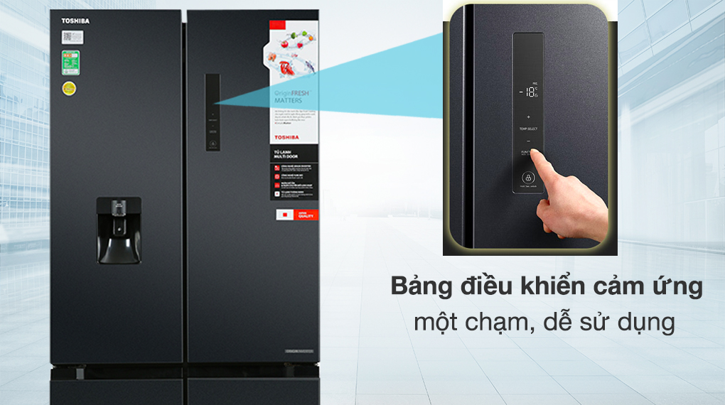 Bảng điều khiển được thiết kế dạng cảm ứng một chạm, nằm ở phía bên ngoài cánh cửa tủ lạnh, giúp người dùng quan sát dễ dàng và điều khiển các chức năng tủ lạnh để sử dụng.