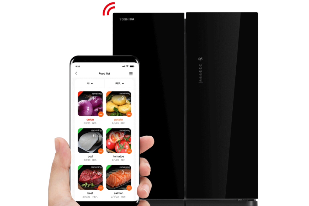 – Tủ lạnh Toshiba toát lên vẻ ngoài sang trọng, đẳng cấp với mặt kính đen bóng thời thượng.