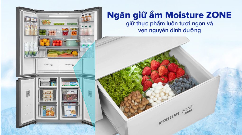 – Ngăn giữ ẩm The Moisture Zone với tấm chắn đặc biệt giúp duy trì độ ẩm ở mức 86 %, giữ thực phẩm luôn tươi ngon và vẹn nguyên dinh dưỡng.