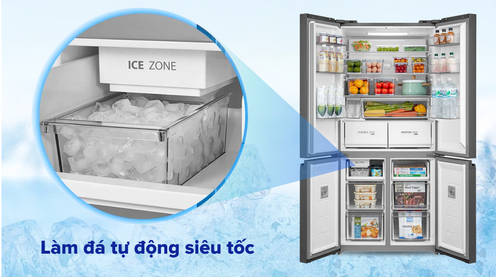 – Hệ thống làm đá tự động, nhanh chóng với công suất 158 viên đá/ngày.