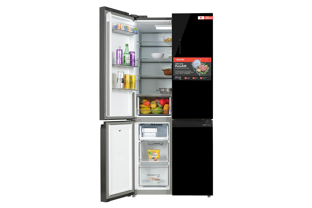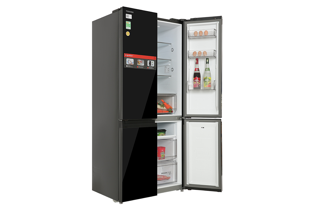 – Toshiba GR-RF677WI-PGV(22)-XK thuộc dòng tủ lạnh Multi Door có 4 cánh, thiết kế cửa kính đen cường lực sang trọng, tạo điểm nhấn cho không gian bếp gia đình thêm đẳng cấp, thời thượng.