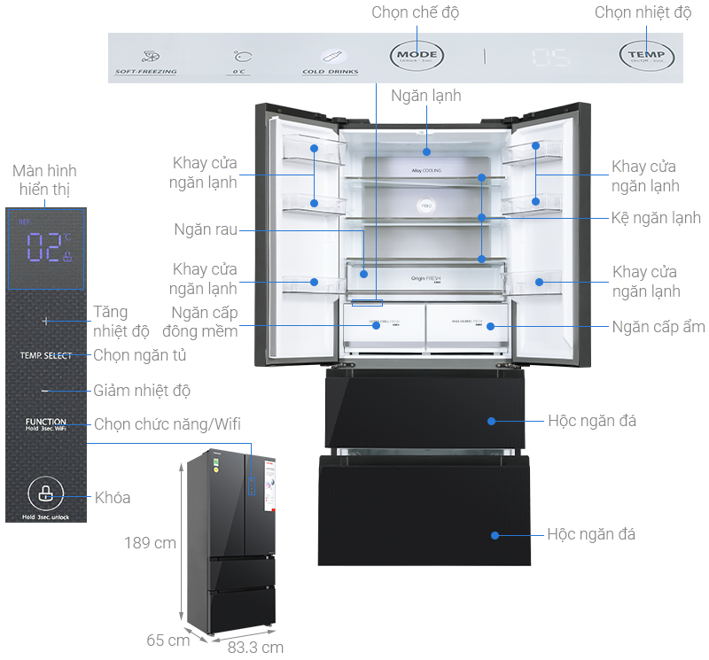 – Bảng điều khiển cảm ứng được bố trí bên ngoài cửa tủ ngăn mát, giúp người dùng dễ quan sát và điều khiển các chức năng trên tủ lạnh thuận tiện.
