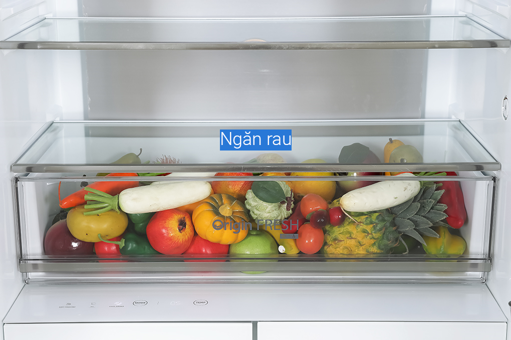– Ngăn cấp ẩm Max-humid fresh: Được thiết kế màng giữ ẩm đặc biệt có thể giữ lại các hạt sương ẩm li ti, giúp duy trì độ ẩm ổn định đến 90%, nhờ đó thực phẩm luôn giữ được độ tươi ngon và hàm lượng chất dinh dưỡng nhiều nhất có thể.