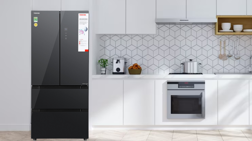 Ngoài ra, tủ lạnh Toshiba còn sở hữu gam màu xám đậm, dễ dàng phối hợp với các nội thất khác bên trong gian bếp hiện đại nhà bạn.