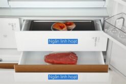 – Ngăn chuyển đổi linh hoạt giữa đông mềm -3°C và Pro Age -1°C giúp giữ trọn vẹn dưỡng chất cho thực phẩm nhờ khay đựng được làm bằng kim loại dẫn nhiệt tốt hơn, người dùng không cần đợi đồ ăn rã đông quá lâu mà có thể sử dụng ngay để nấu.