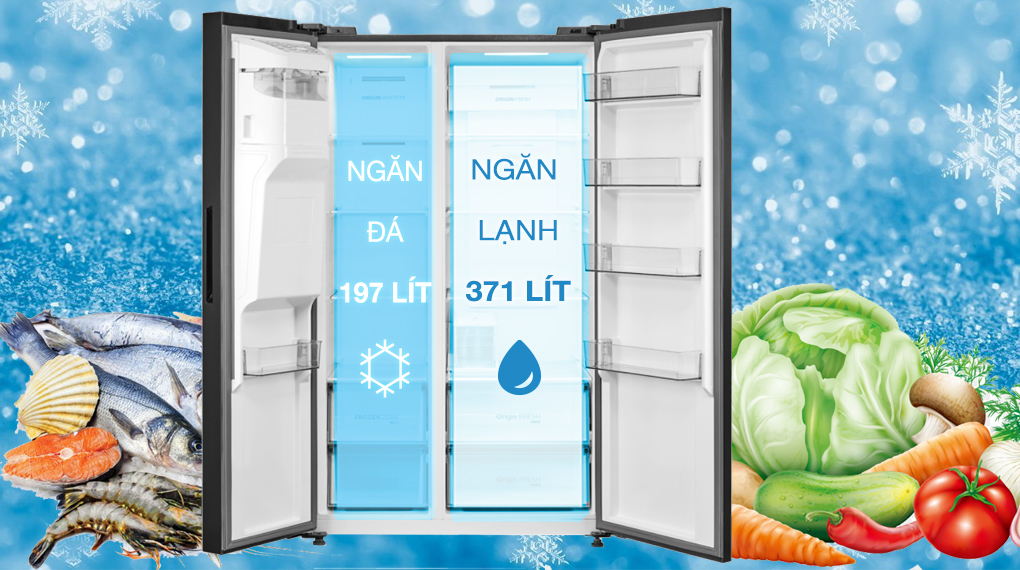 – Với dung tích 568 lít, sản phẩm phù hợp cho các hộ gia đình đông thành viên, trên 5 người sử dụng.