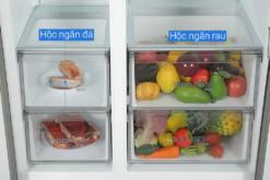 – Thiết kế cửa tủ thông minh: Hỗ trợ người dùng có thể kéo ngăn chứa ra hoàn toàn khi mở cửa tủ 90 độ, thuận tiện cho việc lấy và cho vào thực phẩm bên trong tủ.