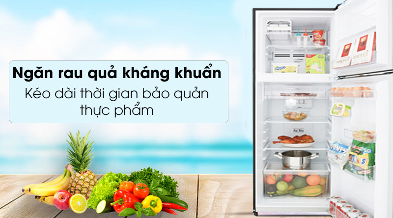Với ngăn rau quả kháng khuẩn, thực phẩm của bạn sẽ được bảo quản lâu hơn nhờ công nghệ kháng khuẩn bằng ion bạc Ag+ giúp hỗ trợ diệt khuẩn cũng như hạn chế tình trạng nấm mốc phát triển từ thực phẩm trong suốt thời gian lưu trữ.