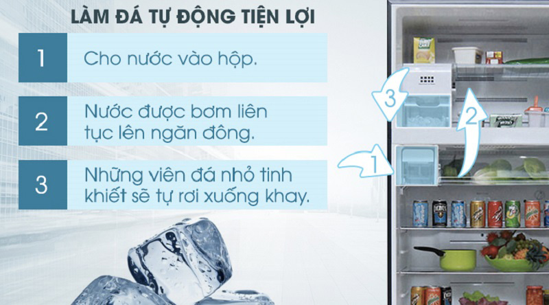 Chỉ chêm nước vào ngăn chứa riêng biệt, và chờ đợi khoảng 3 – 4 phút là bạn có thể sử dụng ngay những viên đá mát lạnh nhờ cơ chế làm đá tự động.
