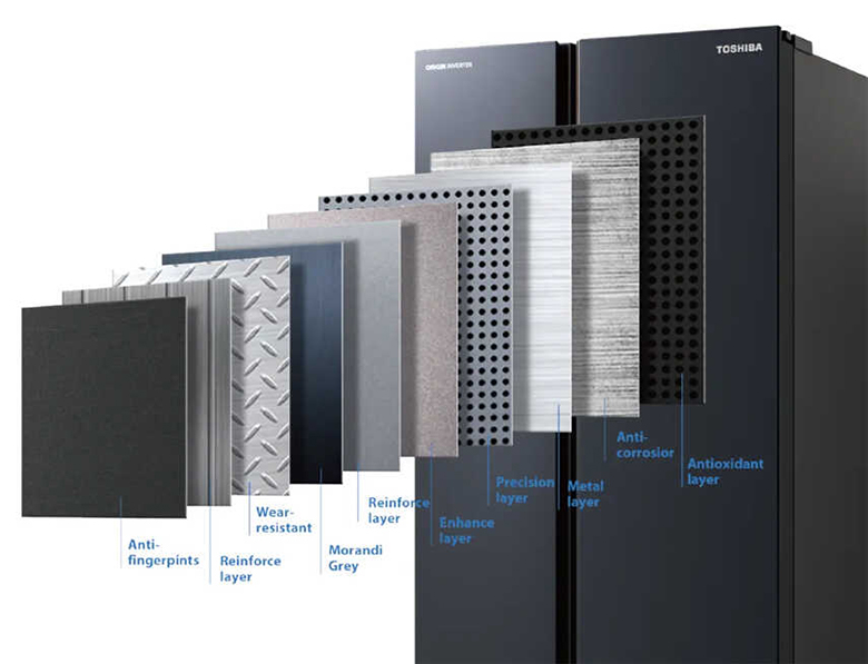 Tủ lạnh Toshiba GR-RS910WI-PMV(06)-MG sở hữu thiết kế Sturdy-Lux sang trọng, đẳng cấp với màu xám thanh lịch.