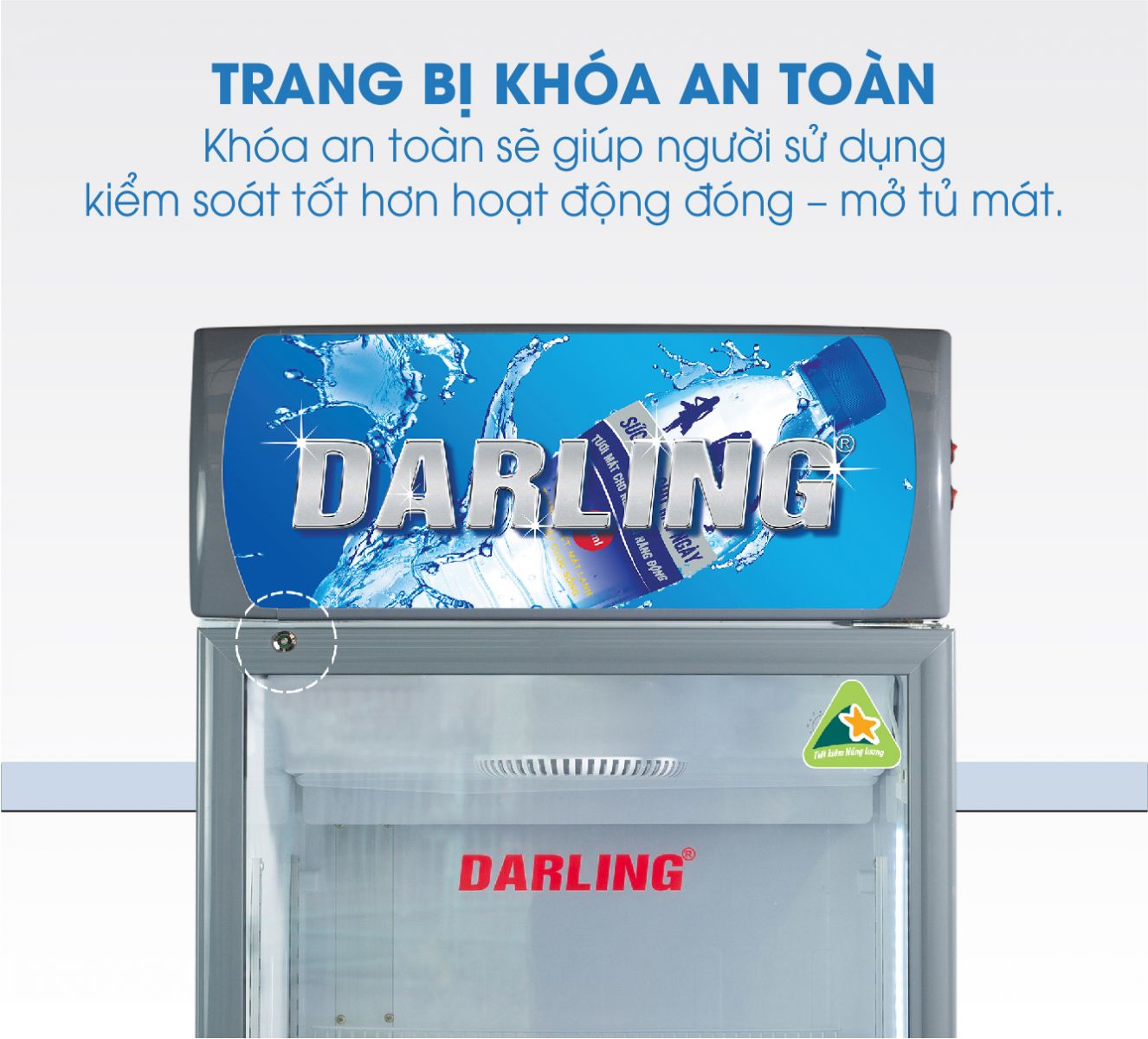 Khóa an toàn sẽ giúp người sử dụng kiểm soát tốt hơn hoạt động đóng và mở tủ mát.