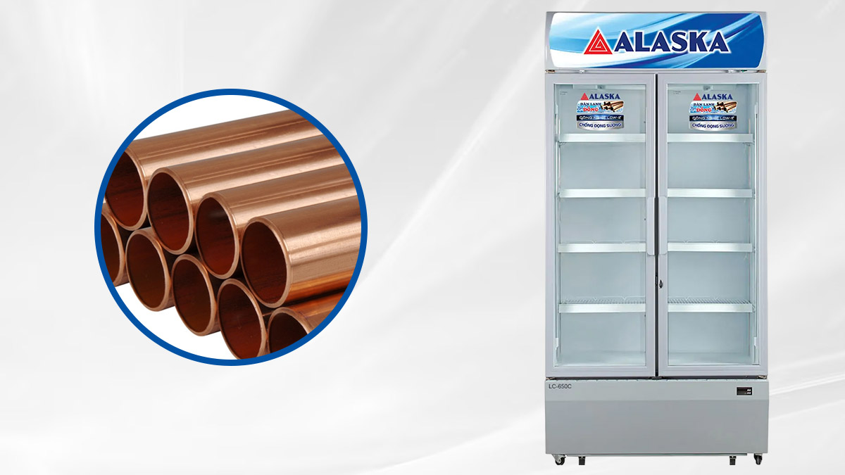 Với dàn lạnh ống đồng, tủ mát có khả năng làm lạnh nhanh, giữ cho thực phẩm luôn được bảo quản ở nhiệt độ lý tưởng. Đồng thời, chất liệu này cũng mang lại độ bền cao, đảm bảo sự ổn định trong quá trình sử dụng lâu dài.