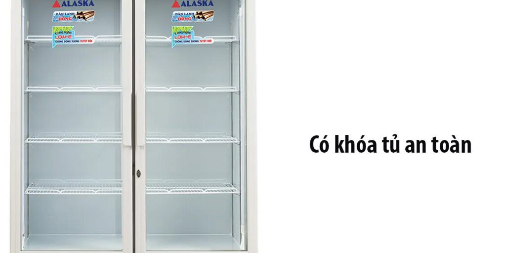 Khóa tủ an toàn được Alaska trang bị giúp ngăn trẻ em mở tủ mát mà không được sự cho phép của người lớn. Khóa tủ không chỉ bảo vệ thực phẩm mà còn giúp tiết kiệm năng lượng. Khi tủ mát được đóng kín và khóa chặt, độ lạnh bên trong được duy trì ổn định hơn, giúp máy hoạt động ít hơn và tiết kiệm điện năng.