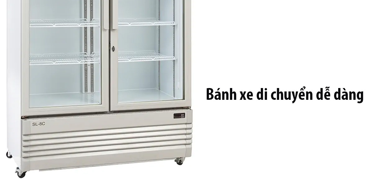 Bánh xe cho phép bạn đặt tủ mát ở bất kỳ vị trí nào bạn muốn mà không cần phải di chuyển thực phẩm hoặc trang thiết bị khác. Điều này tạo điều kiện linh hoạt cho việc sắp xếp không gian nơi đặt tủ.