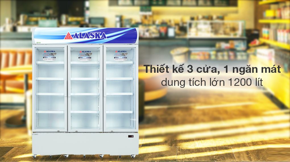 – Alaska LC-1200C3 có kiểu dáng tủ đứng với 3 cánh cửa và 1 ngăn mát, thiết kế đơn giản phối hợp với gam màu trắng bố trí hài hòa trong không gian phòng bếp, cửa hàng, quán ăn của bạn.