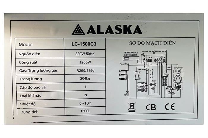 – Tủ Alaska này sử dụng gas R290 là loại gas thường được dùng cho tủ mát, tủ đông với ưu điểm truyền nhiệt tốt, thân thiện môi trường và tiết kiệm điện.