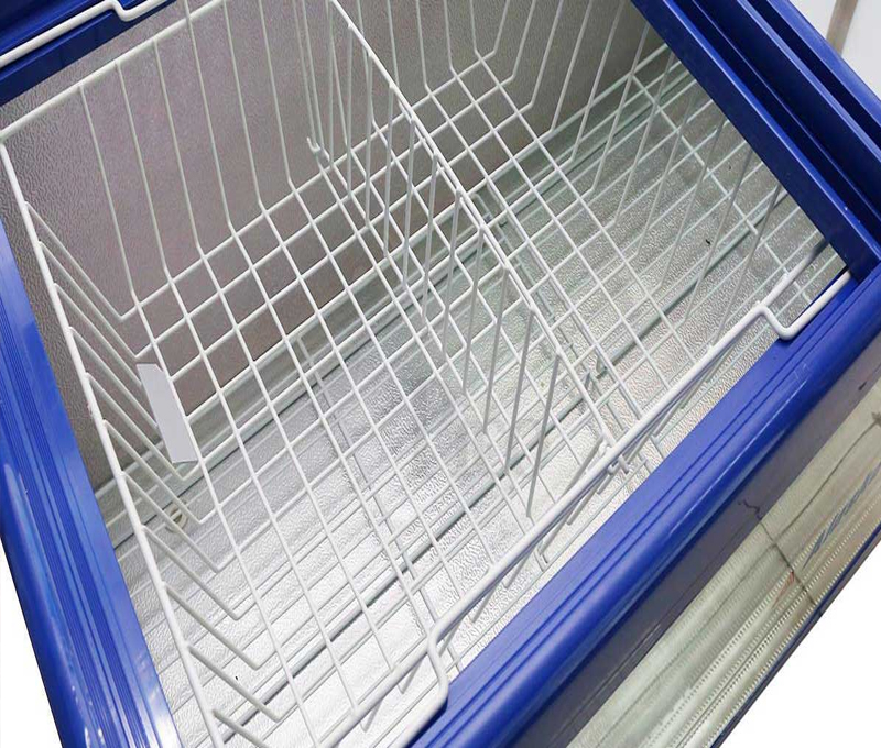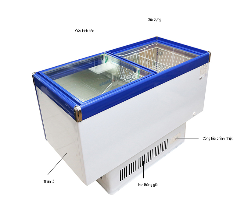 Hệ thống khay đỡ của tủ được thiết kế vững chắc, chịu được trọng lượng lớn và chứa được nhiều hơn. Mặt kính lùa dày dặn trong suốt tạo điều kiện quan sát rõ ràng thực phẩm bên trong.