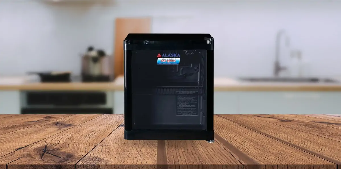 - Tủ mát mini Alaska LC-50D mầu đen có cửa kính 2 lớp chống đọng sương giúp cánh cửa chắc chắn hơn, cách nhiệt hiệu quả, giữ lạnh tốt, tiết kiệm điện năng.