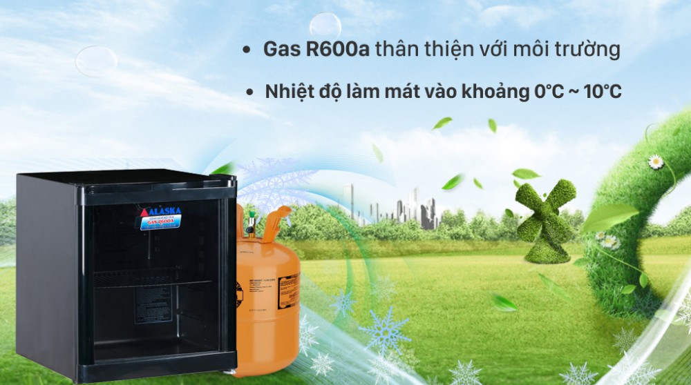 - Tủ mát Alaska LC-50D sử dụng gas lạnh R600a, tiết kiệm điện năng, thân thiện với môi trường