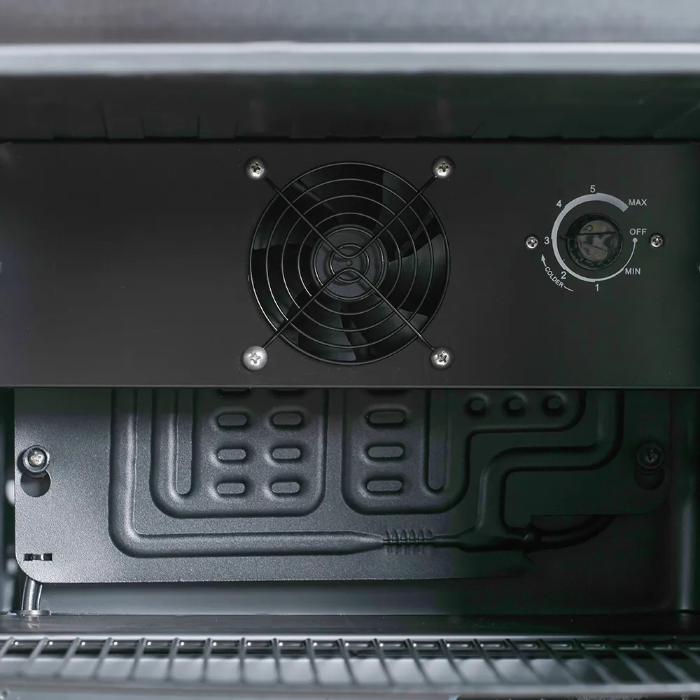 - Dàn lạnh bằng tấm coil nhôm kết hợp quạt lồng sóc làm giảm tiếng ồn trong quá trình sử dụng giúp tủ mát mini Alaska LC-50 làm lạnh nhanh.