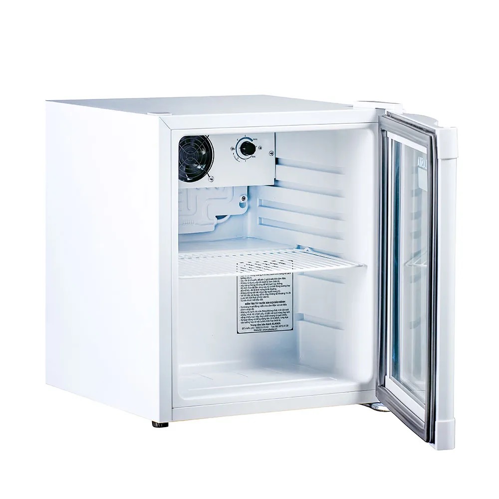 Tủ mát Alaska LC-50 kiểu dáng mini có kích thước 430x460x510 mm, cửa kính 2 lớp dày, giữ nhiệt độ lạnh tốt, tránh lãng phí năng lượng điện. Thân tủ được làm bằng chất liệu thép sơn màu trắng bền chắc, sạch sẽ, dễ dàng lau chùi tủ