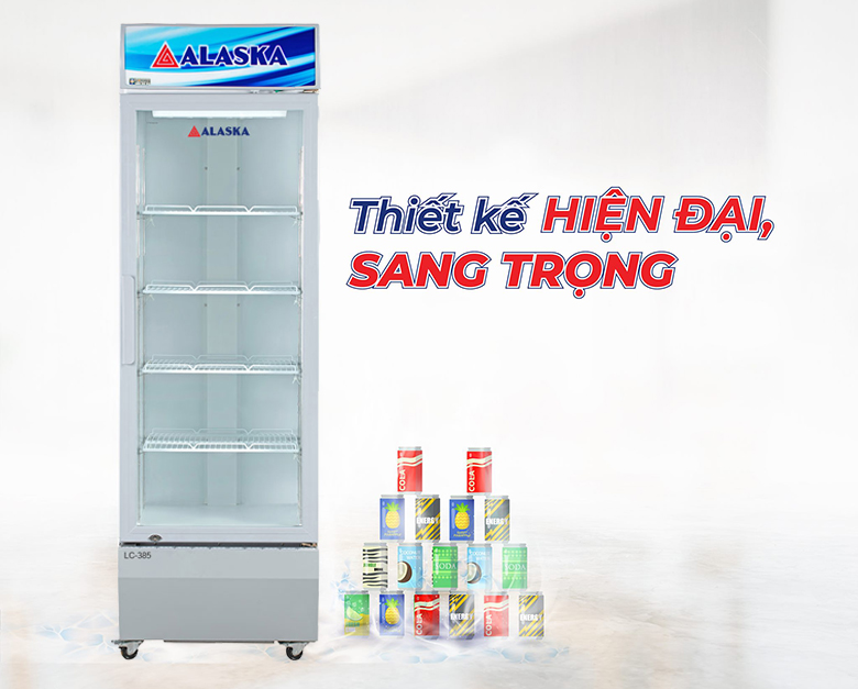 Tủ mát Alaska LC-385 là dạng tủ mát trưng bày có dung tích tổng 450 lít, sử dụng 382 lít có thiết kế 1 cửa mở ngang, kính 2 lớp hút chân không công nghệ Low-e giúp giữ nhiệt tốt, có sấy kính. Hộp đèn được trang bị phía trên và dàn đèn bên trong thân tủ tạo cảm giác tươi mát cho sản phẩm.