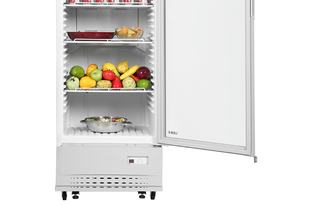 – Cửa tủ với chất liệu kính cường lực phủ lớp cách nhiệt Low-E hạn chế quá trình trao đổi nhiệt giữa bên trong và bên ngoài tủ, tiết kiệm điện năng cho quá trình làm lạnh.